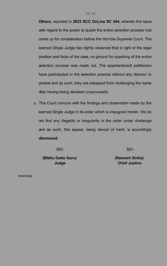 असफल होने वाले अभ्यर्थियों ने कोर्ट डबल बेंच में याचिका लगाई थी, लेकिन डबल बेंच ने सिंगल बेंच के फैसले को यथावत रखा है। कोर्ट ने तजवीर सिंह सोढी बनाम स्टेट ऑफ जम्मू कश्मीर 2023 केस का हवाला दिया है।