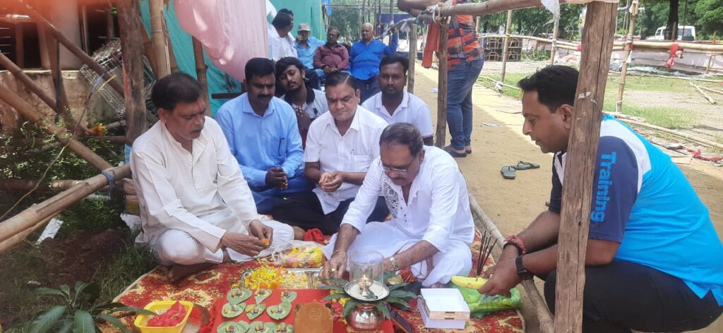 भिलाई: इस्पात नगरी भिलाई में भक्ति का दौर चल रहा है गणेश पूजा समाप्ति के बाद दुर्गा उत्सव मनाने भव्य पंडाल सजाये जा रहे हैं इसी कड़ी में सेक्टर 10 जगन्नाथ पूजा स्थल भिलाई में भव्य पूजा पंडाल बनाने हर हर गंगे दुर्गा उत्सव पूजा सेवा समिति के अध्यक्ष डाॅ रामदत्त दीक्षित द्वारा बुधवार को भूमि पूजन किया गया । समिति के सचिव मुकेश वर्मा महासचिव मनोज फंड उपाध्यक्ष के बाल्लया ,एस मोहन,तारिक खान,एम रवि,पूजा प्रभारी मुकेश मिश्रा, हरिशंकर यादव,एन डी लाल श्रीवास्तव , कोषाध्यक्ष एस रामलु , युवा संगठन रजत वर्मा, मोहित , करण एवं प्रेरणा स्त्रोत पी के देव एवं समिति के कमलकांत पाण्डेय विशेष रूप से उपस्थित थे । अध्यक्ष रामदत्त दीक्षित ने बताया कि समिति द्वारा सफलता पूर्वक भव्य दुर्गा पूजा आकर्षक पंडालों के साथ विगत 24 वर्षो से आयोजन किया जा रहा है । पूरे इस्पात नगरी में मात्र सेक्टर 10 आकर्षक साज सज्जा के साथ 14 फीट की मां अम्बे रूप की प्रतिमा स्थापित की जाती है माता के दर्शन करने प्रतिदिन 20 हजार से ज्यादा भक्तों का आना जाना लगा रहता है सचिव मुकेश वर्मा ने बताया इस वर्ष समिति ने 120 वर्ग फीट लम्बा एवं 100 फीट से ज्यादा चौड़ा भूमि में भव्य विशाल पूजा पंडाल को उज्जैन के महाकालेश्वर मंदिर का प्रतिरूप देकर कलकत्ता के 50 कलाकारों द्वारा तैयार किया जा रहा है पंडाल के भीतर 14 फ़ीट की माता की प्रतिमा आकर्षक प्रकाश व्यवस्था साज सजावट के साथ चारों ओर सेल्फी जोन बनाया जायेगा वर्मा ने कहा उक्त पंडाल में माता की प्रतिमा के दर्शन हेतु कोई शुल्क नहीं लिया जायेगा माता रानी के भक्तों से अपिल की है कि अधिक से अधिक संख्या में आकर माता रानी के दर्शन करें।