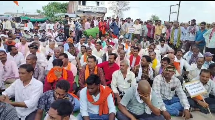 13 सूत्रीय मांगो को लेकर भोरमदेव सहकारी शक्कर कारखना के सामने धरने पर बैठे किसान