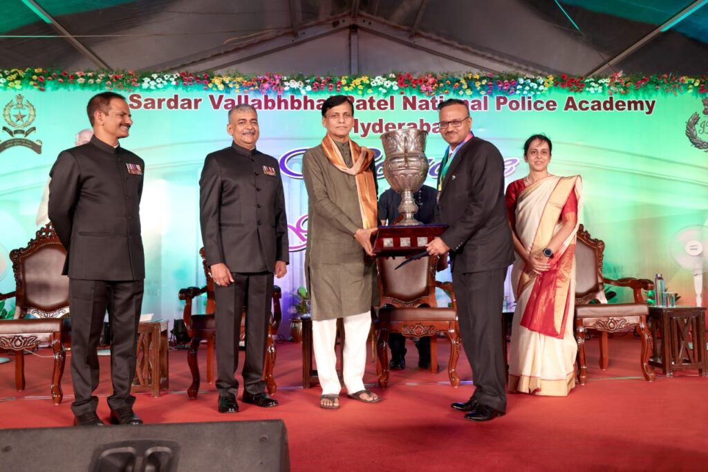 दुर्ग । दुर्ग रेंज के पुलिस महानिरीक्षक राम गोपाल गर्ग को राष्ट्रीय पुलिस अकादमी, हैदराबाद में आयोजित पासिंग आउट परेड में केंद्रीय गृह राज्य मंत्री द्वारा प्रधानमंत्री सिल्वर कप ट्रॉफी से सम्मानित किया गया। यह सम्मान उन्हें केस स्टडी प्रतियोगिता 2024 में उत्कृष्ट प्रदर्शन के लिए मिला।