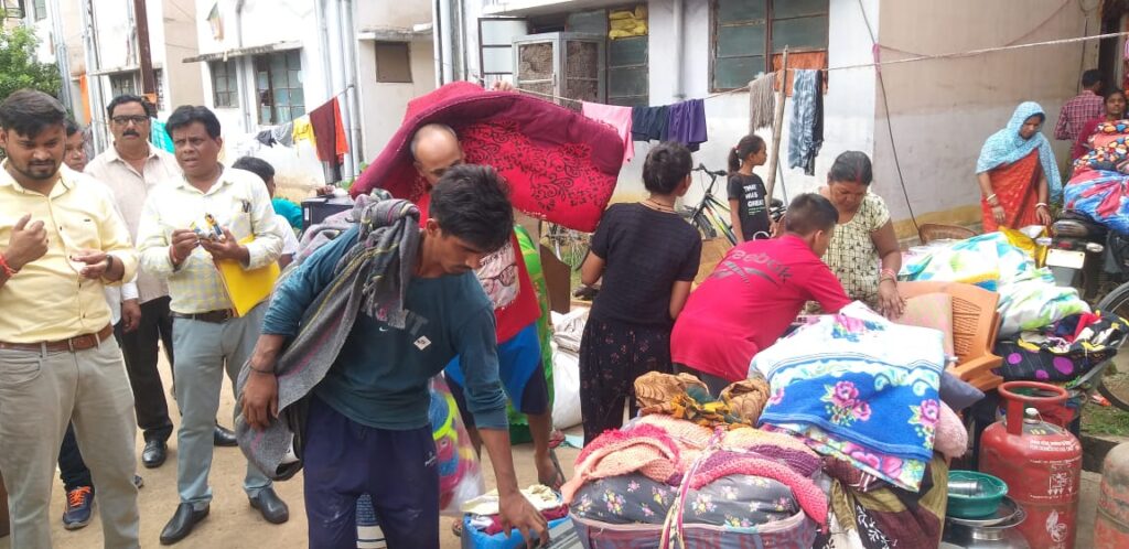 भिलाई । नगर पाली निगम भिलाई क्षेत्र के प्रधानमंत्री आवास योजना एचपी अमरपाली फेस वन में की गई कार्रवाई। प्राप्त जानकारी के अनुसार नगर निगम भिलाई द्वारा प्रधानमंत्री आवास योजना में हितग्राहियों को मकान आवंटित किया गया था आम्रपाली फेस वन में 7 कब्जाधारीयो में से पांच कब्जे धारी को नगर निगम से मकान आवंटित हो चुका था। उनके द्वारा पूरा पैसा जमा नहीं किया गया था। दूसरे के आवंटित मकान में कब्जा करके रह रहे थे। उनका मकान खाली कराया गया। उनको पूर्व में नोटिस द्वारा सूचना दी गई थी कि जिस मकान में रह रहे हो वह आपका नहीं है। नियमानुसार पूरा पैसा जमा करके ही भौतिक आधिपत्य प्राप्त करके ही अपने मकान में निवास कर सकते हैं। दो कब्जे धारी ऐसे थे जो पूरी तरह अवैध रूप से ताला तोड़कर के निवास कर रहे थे। कब्जे का मकान दूसरे व्यक्ति को लॉटरी द्वारा आवंटित कर दिया जा चुका है। नगर निगम के कर्मचारियों द्वारा स्वयं सभी सामान बाहर किया गया । अवैध मकान में टीवी, फ्रिज, वाशिंग मशीन, डबल बेड अलमारी, सोफा, डाइनिंग टेबल, पूरा घर सामग्री से सजा लिया गया था।