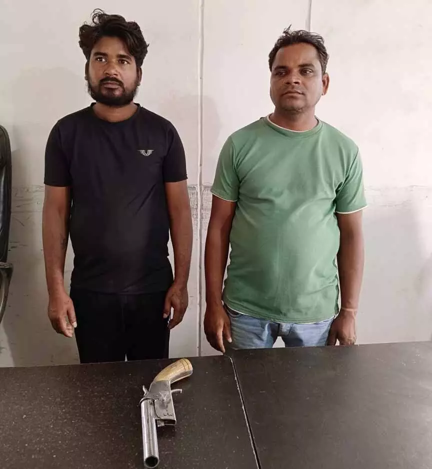 पुलिस ने मौके पर पहुंचकर घेराबंदी की और एक व्यक्ति के कब्जे से देसी कट्टा बरामद किया। गिरफ्तार व्यक्तियों के नाम कृष्णा कुमार बैरागी और भागचंद सिंह द्विवेदी हैं।