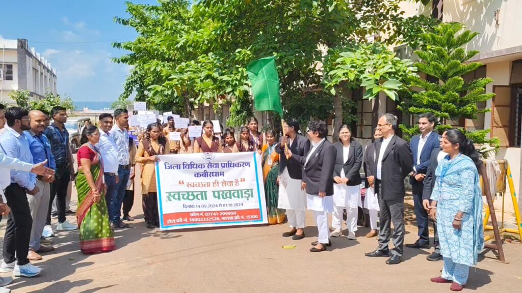 ‘‘स्वच्छता ही सेवा’’ विषय पर आज जिला एवं सत्र न्यायालय कबीरधाम से स्वच्छता रैली निकाली गई श्रीमती सत्यभामा अजय दुबे प्रधान जिला न्यायाधीश ने रैली को हरि झंडी दिखाकर रवाना किया छात्रों की इस रैली में स्लोगन एवं बैनर के माध्यम से स्वच्छता का संदेश देते हुए लोगों से अपने घर जैसे ही साथ आसपास के क्षेत्र को साफ-सुथरा रखने की अपील की छात्राओं ने अपने संदेश में स्वच्छता पर रोचक नारे लगाये एवं स्लोगन लिखे स्वच्छता से समाज स्वस्थ होता है। ‘‘स्वच्छता अपनाये भरपूर, रोगों से रहेंगे दूर’’, गांव-शहर रखोगे स्वच्छ, देश-दुनिया होगी स्वस्थ स्वच्छता का एक ही नारा, स्वच्छ रहे हरदम देश हमारा इत्यादि। इस मौके पर छात्र-छात्राओं में उत्साह देखा गया रैली जिला न्यायालय परिसर से निकलकर कलेक्टोरेट के सामने से होते हुए रेस्टहाउस के रास्ते से करपात्री स्कूल पर समाप्त हुई। ‘‘स्वच्छता ही सेवा’’ विषय पर जिला विधिक सेवा प्राधिकरण जिला न्यायालय द्वारा निकाली गई इस रैली में छात्र-छात्राओं को स्वच्छता का संकल्प दिलाया गया।