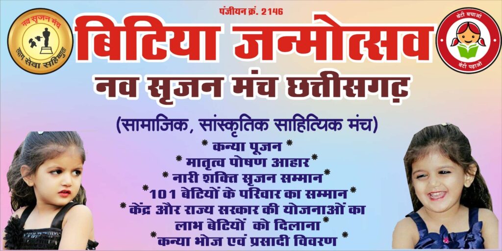 रायपुर – शरद नवरात्रि के अवसर पर आदि शक्ति की आराधना के साथ सामाजिक संस्था नवसृजन मंच द्वारा बेटियों के जन्म को प्रोत्साहित करने हेतु विगत 7 वर्षों से अपने पेटेंट कार्यक्रम बिटियाजन्मोत्सव मनाता रहा है इस वर्ष भी बिटिया जन्मोत्सव का आयोजन 4 अक्टूबर को किया जा रहा है। वृंदावन हाल सिविल लाइन में सम्पन्न होने वाले बिटिया जन्मोत्सव के आयोजन में 151 ऐसी बेटियों का सम्मान किया जाएगा जो 6 माह के अंदर जन्मी है बेटियों के जन्म को प्रोत्साहित करने बेटियों के माता पिता को सम्मान पत्र के साथ बेटियों के लालन पालन की प्रारंभिक चीजे बेबी किट उपहार स्वरूप भेंट की जाएगी साथ ही 151 कन्याओं का पूजन भी आदि शक्ति के रूप में किया जाएगा बिटिया के जन्म के बाद माता का पोषण कैसा हो इसकी जानकारी भी आहार विशेषज्ञ डा नम्रता सिरमौर (गायनेकोलोजिस्ट) द्वारा कार्यक्रम के दौरान दी जाएगी साथ ही केंद्र और राज्य सरकार द्वारा बेटियों के जन्म से लेकर आजीवन मिलने वाली शासन की योजनाओ की जानकारी भी कार्यक्रम दौरान महिला बाल विकाश विभाग द्वारा दी जाएगी और उन्हें कार्यक्रम स्थल में ही जिन योजनाओ से जोड़ा जा सकता है उन योजनाओं से जोड़ा भी जाएगा जिसके लिए महिला एवं बाल विकाश के सहयोग से सम्बंधित अधिकारी भी उपस्थित रहेंगे नवरात्र आदि शक्ति के पूजन का दिन सँस्था द्वारा महिलाओं का सम्मान नारी शक्ति सृजन सम्मान से किया जाएगा जिसमे अलग अलग क्षेत्रों से सविता मोतलग (नृत्य),विनीता अग्रवाल (विधि), मंजुला वर्मा (शिक्षा), विनीता धुर्वे (चिकित्सा), सुखविंदर कौर माथारु (व्यवसाई), शुभ्रा ठाकुर (कवियत्री), मेघा तिवारी (पत्रकारिता) तृप्ति सोनी (पत्रकारिता), गोपा सान्याल (शास्त्रीय गायन), डा प्रमिला मंडावी (पुलिस) जैसे क्षेत्रों में अपनी योग्यता के बल पर मुकाम प्राप्त करने वाली महिलाओं को नारी शक्ति सृजन सम्मान से सम्मानित किया जाएगा संस्था नवसृजन मंच के प्रदेश अध्यक्ष अमरजीत सिंह छाबड़ा ने बताया कि संस्था बेटियों के जन्म को प्रोत्साहित करने विगत कई वर्षों से यह आयोजन करती आ रही है वर्ष में दो बार शरद नवरात्रि और चैत्र नवरात्रि में वृहद आयोजन होता है साथ ही बीच बीच मे सरकारी अस्पतालों में बेटियों के जन्म को प्रोत्साहित करने आयोजन साल भर होते रहता है , इस वर्ष छत्तीसगढ़ महिला चेंबर की टीम भी सहयोगी के रूप में जुड़ी है साथ ही नवरात्रि पर कन्या पूजन का आयोजन भी इस दौरान होता है जिसके लिए संस्था नवसृजन मंच के सदस्यगण जिनमे डॉ देवाशीष मुखर्जी कांतिलाल जैन किशोर महानन्द डा प्रीति सतपथी, मनीषा सिंह, डा रश्मि चावरे, मधु अरोरा, आभा मिश्रा,मनोज जैन नरेश नामदेव डॉ यूलेन्द्र सैय्यद रजा श्रध्दा राजपूत राजेश साहू सहित राजधानी की प्रतिष्ठित संस