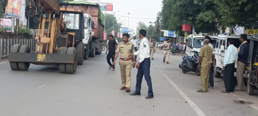 प्रआर. चंद्रशेखर मेहर, आरक्षक राजेश वर्मा, राहुल सोनी, अर्जुन दुबे यातायात जोन दुर्ग के द्वारा पटेल चौक दुर्ग में रोड में खडे़ भारी वाहन क्रं सीजी 10 बीआर 5356 के विरूद्ध कार्यवाही करते हुए थाना दुर्ग में धारा 285 के अंतर्गत अपराध दर्ज कराया गया जिस पर संबंधित थाने के द्वारा वाहन जप्त कर वाहन मालिक एवं चालक को अग्रिम कार्यवाही हेतु न्यायालय पेश किया जावेगा। पुलिस अधीक्षक दुर्ग के निर्देश में सड़क में बाधा उत्पन्न करने वाले वाहनो चालको के विरूद्ध यातायात पुलिस लगातार कार्यवाही की जा रही है। यातायात से संबंधित किसी भी प्रकार की सुझाव एवं शिकायत के लिये यातायात पुलिस द्वारा जारी वाट्सअप नंबर ( 9479192029 ) पर सूचना/जानकारी दे सकते है।
