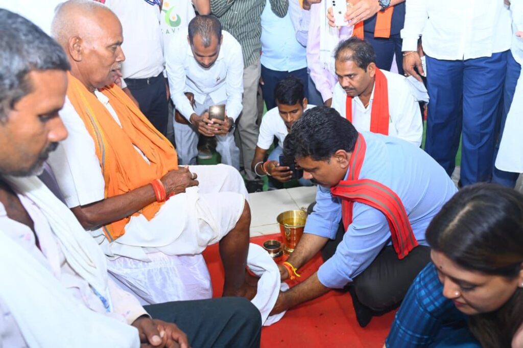 सत्येंद्र बड़घरे कवर्धा – छत्तीसगढ़ी भाषा म एक कहावत हे ” घर म आए पहुना देवता का होते एक लोटा पानी म गोड ल धो के पाहुना ल घर म बाईठारथे ” जी हां यह कहावत को छत्तीसगढ़ के विष्णुदेव की सरकार के उप मुख्यमंत्री विजय शर्मा और जिले की पंडरिया विधायक भावना बाहोरा ने आज सिद्ध कर दिया जब प्रधानमंत्री आवास मेला में योजना के हितग्राहियों का चरण पखार कर किया स्वागत और सम्मान किया गया साथ ही उपमुख्यमंत्री विजय शर्मा ने जिले के 22 हजार परिवार को दिए पीएम आवास की सौगात भी दि तथा आवास मेले में जिले के चार हजार से अधिक लाभर्थियों को आवास की चाबी भी भेंट की, जिले के 18 हजार से अधिक आवासहीन ग्रामीण परिवारों को स्वीकृत पत्र प्रदान किया गया वही आवास मेला में हितग्रसाहियों को आवास स्वीकृत होने, आवास निर्माण पूर्ण होने और नए घर में प्रवेश के लिए बधाई एवं शुभकामनाएं भी दी।