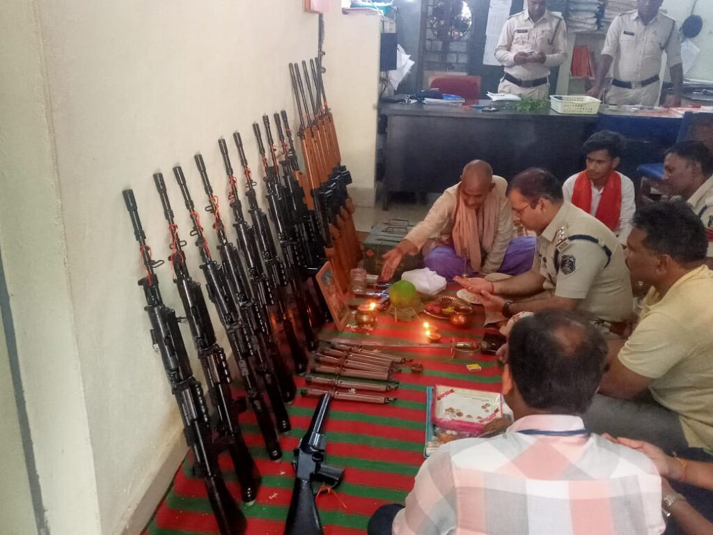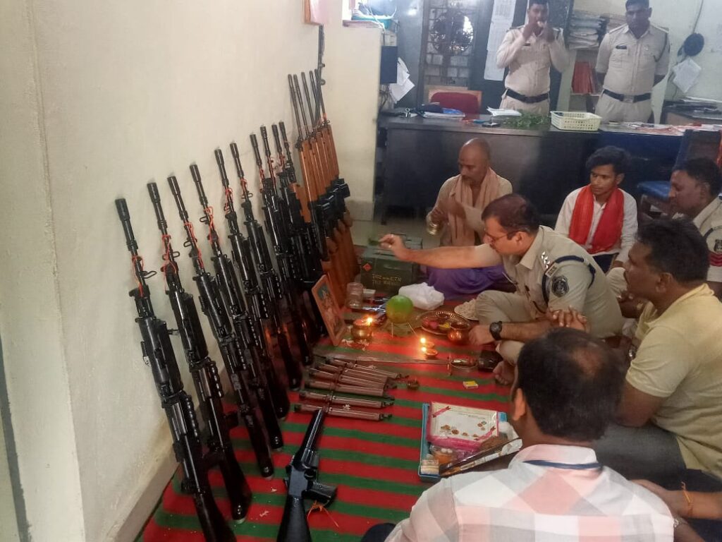 सत्येंद्र बडघरे कवर्धा – प्रति वर्ष की भांति इस वर्ष भी कबीरधाम जिले के पुलिस थाना पिपरिया मे विजय दशमी के अवसर पर सस्त्रो की पूजा की गई।