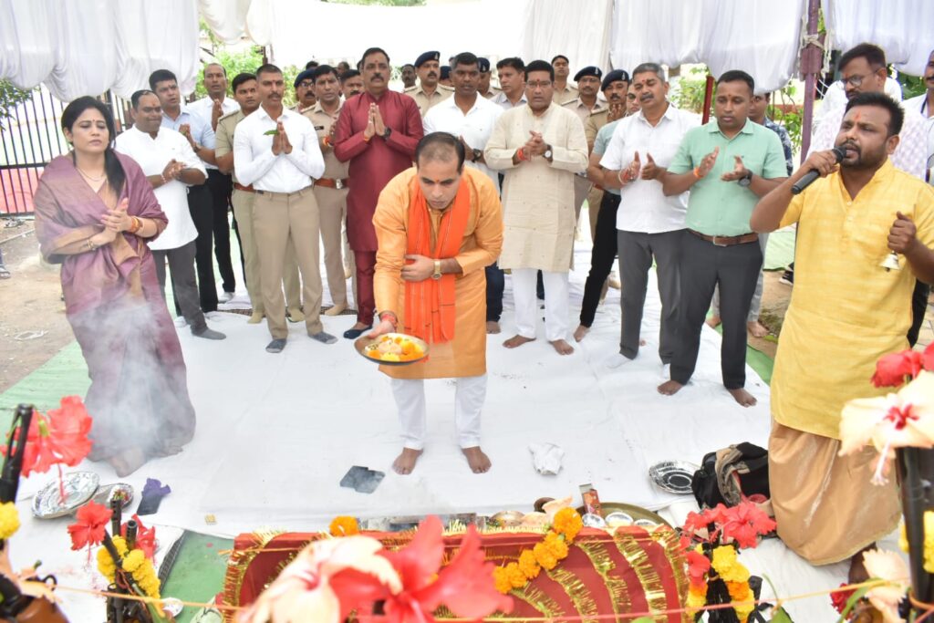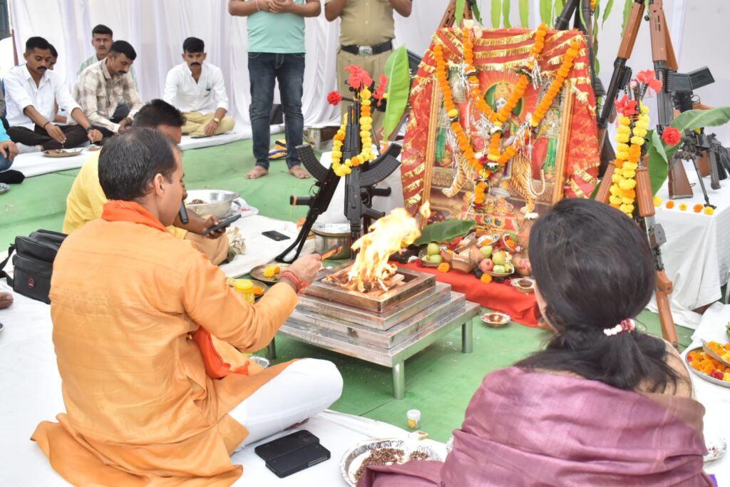 दुर्ग में विजयादशमी पर पुलिस अधीक्षक जितेंद्र शुक्ला ने की शस्त्र पूजा, अधिकारियों-कर्मचारियों ने लिया माता दुर्गा का आशीर्वाद