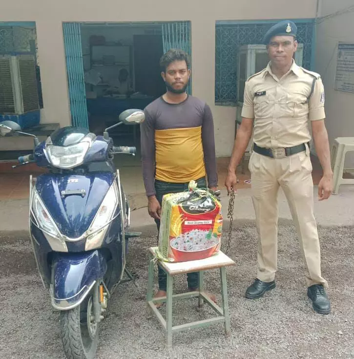 पुलिस ने बताया कि रविशंकर विंद अपने जुपिटर स्कूटी कमांक UP 63 AZ 5573 पर सवार था, जब उसे रोककर तलाशी ली गई। इस दौरान उसके पास से 9.592 किलोग्राम गांजा मिला, जिसकी कीमत लगभग 1,43,880 रुपये है। इसके अलावा, उसके पास से 1 एंड्रॉयड मोबाइल और 1800 रुपये की नगदी भी मिली है।