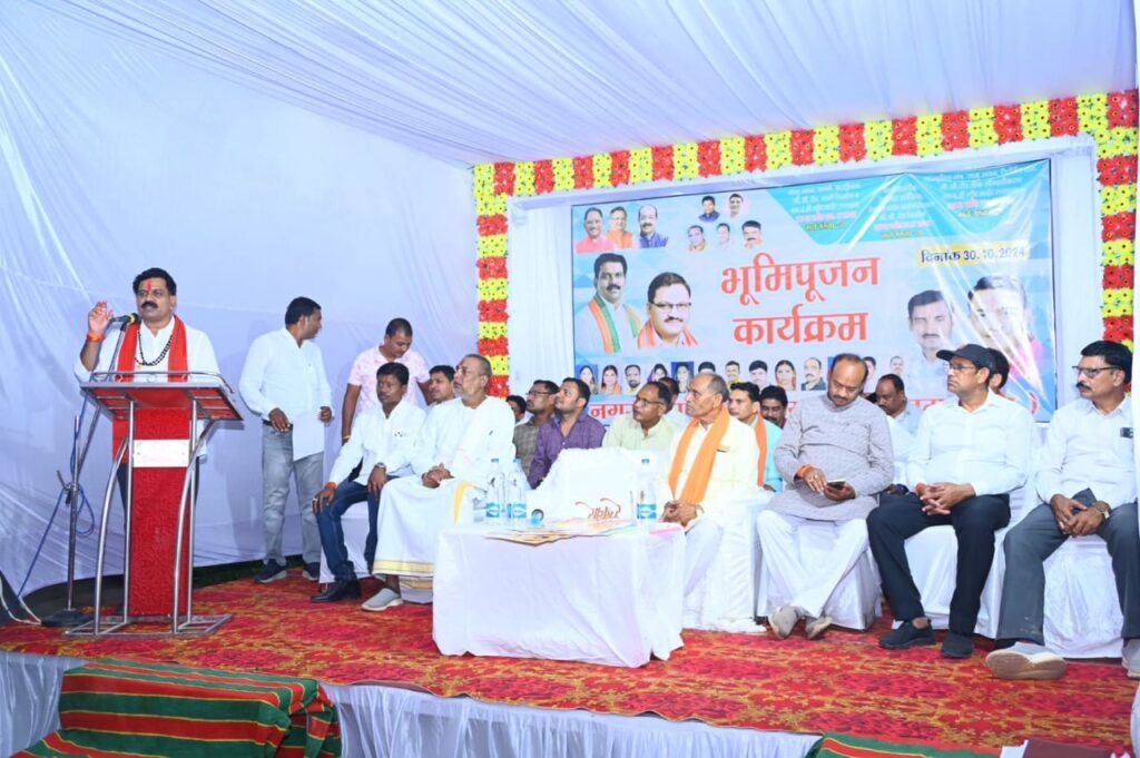 उपमुख्यमंत्री श्री शर्मा ने इसी प्रकार वार्ड क्र. 01 मनोज वैष्णव के घर पास सांस्कृतिक मंच निर्माण कार्य लागत 3 लाख 54 हजार, वार्ड क 01 सुखराम साहू के घर पास मंच निर्माण कार्य लागत 4 लाख 56 हजार, वार्ड क्र. 09 फुलझर सतनामी के घर पास सांस्कृतिक मंच निर्माण कार्य 3 लाख 79 हजार, वार्ड क्र. 15 शिवकुमार साहू के घर से एस.एल.आर. एम. सेन्टर तक सी.सी. रोड निर्माण कार्य 8 लाख 73 हजार, धन्नू नाविक के घर पास सामु भवन उन्नयन व शौचालय निर्माण कार्य लागत 6 लाख 33 हजार, वार्ड 09 यात्री प्रतिक्षालय के पास रिटर्निंग वॉल व चबुतरा निर्माण कार्य लागत 8 लाख 15 हजार रूपए, वार्ड क्र. 15 सामुदायिक स्वा. केन्द्र आवास गृह के पास सांस्कृतिक मंच निर्माण कार्य लागत 3 लाख 79 हजार रूपए, सर्व सामाजिक मांगलिक भवन से प्रवेश द्वार तक एल.ई.डी. स्ट्रीट लाईट (प्रकाश व्यवस्था) कार्य लागत 19 लाख 62 रूपए, साक्षरता चौक से बड़े पुल तक एल.ई.डी. स्ट्रीट लाईट (प्रकाश व्यवस्था) कार्य लागत 11 लागत 61 हजार रूपए, वार्ड क्र. 15 राजेन्द्र साहू के घर पास मंच एवं इंटर लाफिंग कार्य निर्माण कार्य लागत 16 लाख 10 हजार रूपए, वार्ड 15 प्रवेश द्वार से कार्यालय नगर पंचायत भवन तक पाथवे निर्माण कार्य लागत 19 लाख 01 हजार रूपए, भारत माता बौंक से दैनिक बाजार तक बी.टी. रोड निर्माण कार्य लागत 17 लाख 48 रूपए, वार्ड क्र. 04 सामु, भवन के पास वॉल व इंटर लॉकिंग निर्माण कार्य लागत 2 लागत 17 रूपए, लक्ष्मी चौक सौन्दर्याकरण कार्य लागत 5 लाख 82 हजार रूपए, पं. दीनदयाल उपाध्याय एवं भारत माता चौक रिनोवेशन कार्य लागत 5 लाख 02 रूपए और वार्ड क्र. 09 जैतखाम चौक निर्माण कार्य14 लाख 26 हजार रूपए का विधिवत भूमिपूजन किया। इसके साथ ही वार्ड 15 में पाईप लाईन विस्तार कार्य नलकूप खनन सहित लागत 18 लाख 81 हजार रूपए, शासकीय, सामुदायिक, सार्वजनित भवनों में रैन वाटर हार्वेटिंग निर्माण लागत 1 लाख 5 हजार रूपए, पेयजल व्यवस्था के लिए संचालित 46 नग हैंडपंपों के समीन रैन वाटर कार्य के लिए 4 लाख 60 हजार रूपए और निकाय क्षेत्रांतर्गत पेयजल व्यवस्था के लिए मिनी वाटर टैंक निर्माण व पाईप लाईन विस्तार कार्य नलकूप खान कार्य के लिए लागत 18 लाख 19 हजार रूपए का भी भमिपूजन किया।