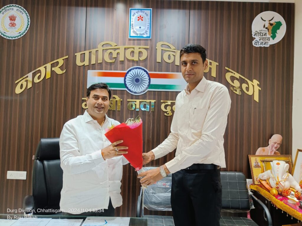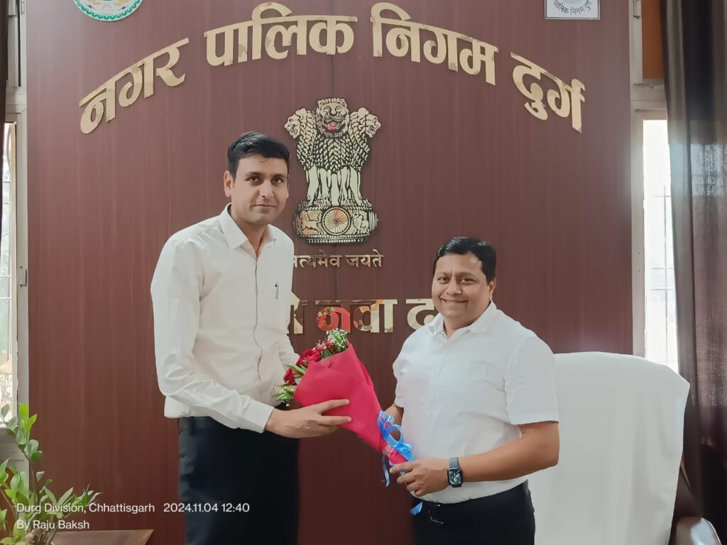 बता दे कि आयुक्त सुमित अग्रवाल 2013 बैच के राज्य प्रशासनिक सेवा के अधिकारी है।इससे पूर्व कांकेर में जिला पंचायत मुख्य कार्यपालन अधिकारी के रुप मे पदस्थ रहे है।पदभार ग्रहण करने के बाद नगर निगम के अधिकारियों ने पुष्प गुच्छ भेंट कर उनका आत्मीय स्वागत किया।उन्होंने निगम अधिकारियों/कर्मचारियो से परिचय प्राप्त कर विभागीय कार्यो की जानकारी ली।