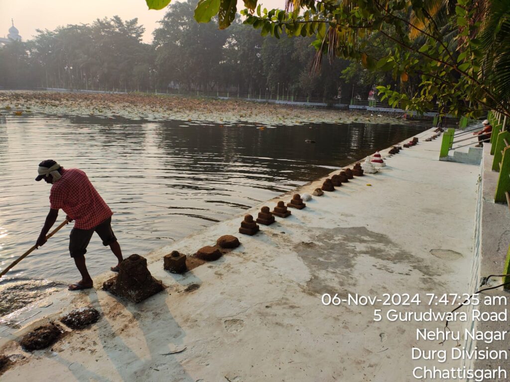 भिलाई । भिलाई नगर निगम भिलाई क्षेत्र में छठ त्यौहार प्रारंभ हो गया है। आयुक्त बजरंग दुबे के निर्देशानुसार सभी तालाबों की सफाई, प्रकाश व्यवस्था अच्छी की जा रही है। तालाबों का रंग रोगन किया जा रहा है। इसके साथ ही प्रमुख चौक चौराहा पर प्रकाश व्यवस्था भी की जा रही है जिससे श्रद्धालु सुबह सुबह शाम जब भी घाट पर जाएं उन्हें किसी प्रकार की परेशानी ना हो यही प्रयास है। सभी लोग श्रद्धापूर्वक छठ पर्व को मानावे। इसके साथ ही लिए सभी तालाबों पर सुपरवाइजर नियुक्त किए गए हैं। बैरी केट लगाए गए हैं। सफाई व्यवस्था के लिए पूरी टीम सजक रहेगी डस्टबिन भी रखा गया है। विसर्जन के लिए कुंड भी बनाया गया है। सभी सभी श्रद्धालु लोग उसका उपयोग कर सकते हैं। तालाबों को व्यवस्थित किया जा रहा है।