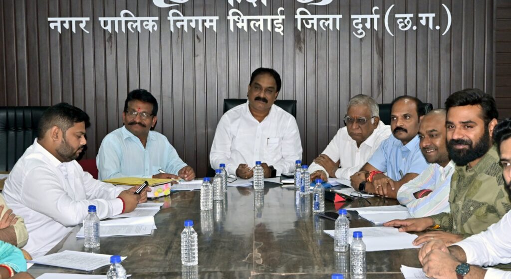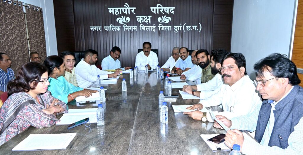 भिलाईनगर । नगर पालिक निगम भिलाई के महापौर परिषद की बैठक वरिष्ठ पार्षद एवं एमआईसी सदस्य सीजू एन्थोनी की अध्यक्षता में आहूत की गई। बैठक में निगम भिलाई के सभी वार्डो में सफाई व्यवस्था को और व्यवस्थित बनाने के लिए प्रस्तुत प्रस्ताव पर विचार विमर्श के बाद 15 कार्यो को स्वीकृति प्रदान की गई। प्रत्येक वार्ड में निर्धारित सफाई कर्मचारियो की उपस्थित को सत्यापित करेगे, वार्ड पार्षद।
