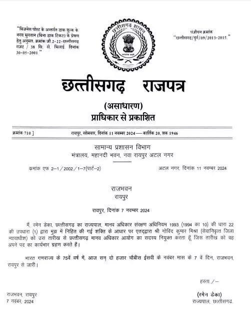 यह नियुक्ति छत्तीसगढ़ मानवाधिकार आयोग में एक महत्वपूर्ण बदलाव है, और गोविंद मिश्रा की अनुभव और योग्यता के आधार पर यह उम्मीद है कि वे इस जिम्मेदारी को पूरी तरह से निभाएंगे.
