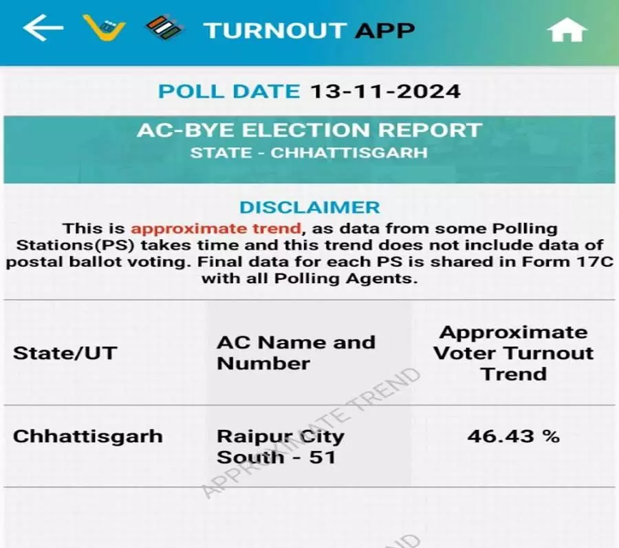 मतदान समाप्ति के उपरांत मतदान का प्रतिशत 50.50 प्रतिशत दर्ज किया गया है। यह आंकड़े अंतिम हैं। मतदान दलों की वापसी पूर्ण हो जाने के पश्चात् उनके प्रपत्रों की जांच के उपरांत मतदान केंद्रवार मतदान के आंकड़े अंतिम रूप से तैयार किए जाएंगे, जिसमें आंशिक संशोधन की संभावना रहेगी।