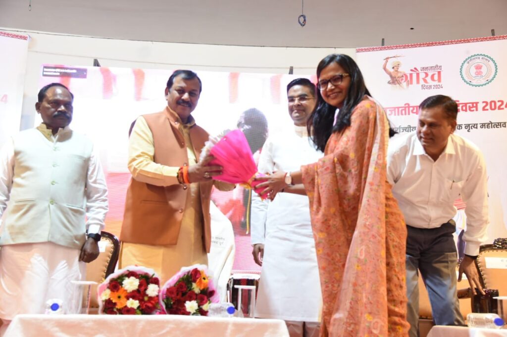 कलेक्टर सुश्री ऋचा प्रकाश चौधरी ने कहा कि आज हम सभी एकत्र होकर भगवान बिरसा मुंडा जी की 150वीं जयंती का समारोह मना रहे है, जिन्होंने आजादी के आंदोलन में अहम योगदान दिया है। माननीय प्रधानमंत्री जी ने 15 नवम्बर को जनजातीय गौरव दिवस के रूप में मनाने का ऐलान किया है।