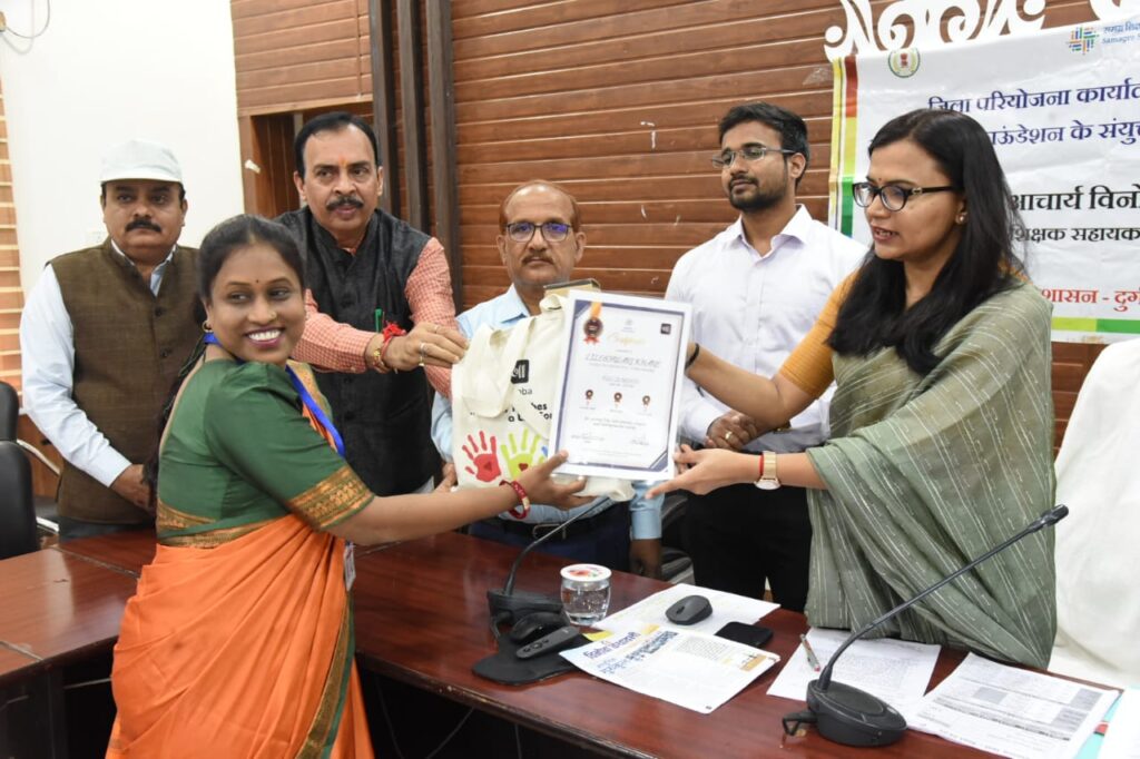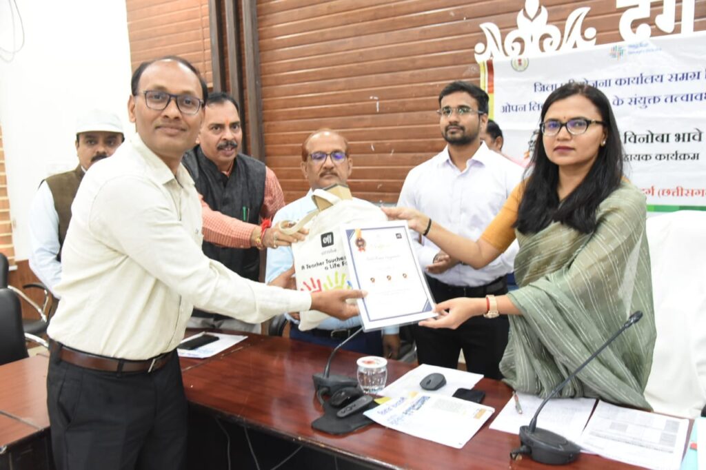 दुर्ग । कलेक्टर ऋचा प्रकाश चौधरी ने जिले में संचालित आचार्य विनोबा भावे शिक्षक कार्यक्रम के अंतर्गत 23 शिक्षकों को सम्मानित किया। जिसमें धमधा ब्लॉक के 11, पाटन ब्लॉक के 07 और दुर्ग ब्लॉक के 05 शिक्षक शामिल है। जिले के विभिन्न स्कूलों के 10 शिक्षकों को माह सितम्बर और अक्टूबर के लिए ’पोस्ट ऑफ द मंथ’ और ’बोलेगा बचपन’ पुरस्कार से सम्मानित किया गया। साथ ही उत्कृष्ट दुर्ग कार्यक्रम के अंतर्गत कक्षा 10वीं एवं 12वीं की माह सितम्बर में आयोजित मासिक परीक्षा मे उत्कृष्ट परिणाम देने वाले 6 विद्यालय के प्राचार्यों को एवं माह अगस्त से अक्टूबर तक जिस क्लस्टर के विद्यालयों ने सक्रिय सहभागिता के साथ उत्कृष्ट प्रदर्शन किया है, उन संकुलों के 7 संकुल समन्वयकों को सम्मानित किया गया।
