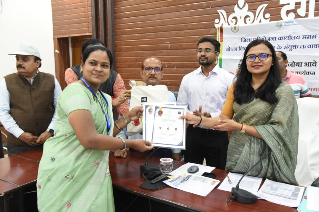 विनोबा ऐप के माध्यम से हर महीने जिले के नवाचारी शिक्षकों को ’’पोस्ट ऑफ द मंथ’’ और विभिन्न कौशल संवर्धन पहल में उत्कृष्ट कार्य के लिए पुरस्कृत किया जाता है। इसके अलावा बोलेगा बचपन, टॉप 3 क्लस्टर और उत्कृष्ट दुर्ग कार्यक्रम में उल्लेखनीय योगदान देने वाले शिक्षकों का भी सम्मान किया जाता है। कार्यक्रम की मुख्य अतिथि कलेक्टर सुश्री चौधरी ने सभी सम्मानित शिक्षकों को बधाई दी और उन्हें प्रोत्साहित किया। उन्होंने सभी शिक्षकों से छात्रों के समग्र विकास के लिए इसी तरह कार्य करते रहने का आह्वान किया। इस कार्यक्रम में ओपन लिंक्स फाउंडेशन के जिला समन्वयक प्राची तुमसरे और जिले के अनेक शिक्षक बड़ी संख्या में उपस्थित थे। कार्यक्रम में संयुक्त कलेक्टर श्री एम. भार्गव, नगर निगम भिलाई के आयुक्त श्री राजीव कुमार पाण्डेय, जिला शिक्षा अधिकारी श्री अरविन्द मिश्रा, विनोबा नोडल डॉ. पुष्पा पुरुषोत्तमन, डीएमसी श्री सुरेन्द्र पांडे, एपीसी श्री विवेक शर्मा, एमआईएस प्रशासक श्री संजय कुमार वर्मा एवं विकासखंड शिक्षा अधिकारी श्री कैलाश साहू उपस्थित थे।