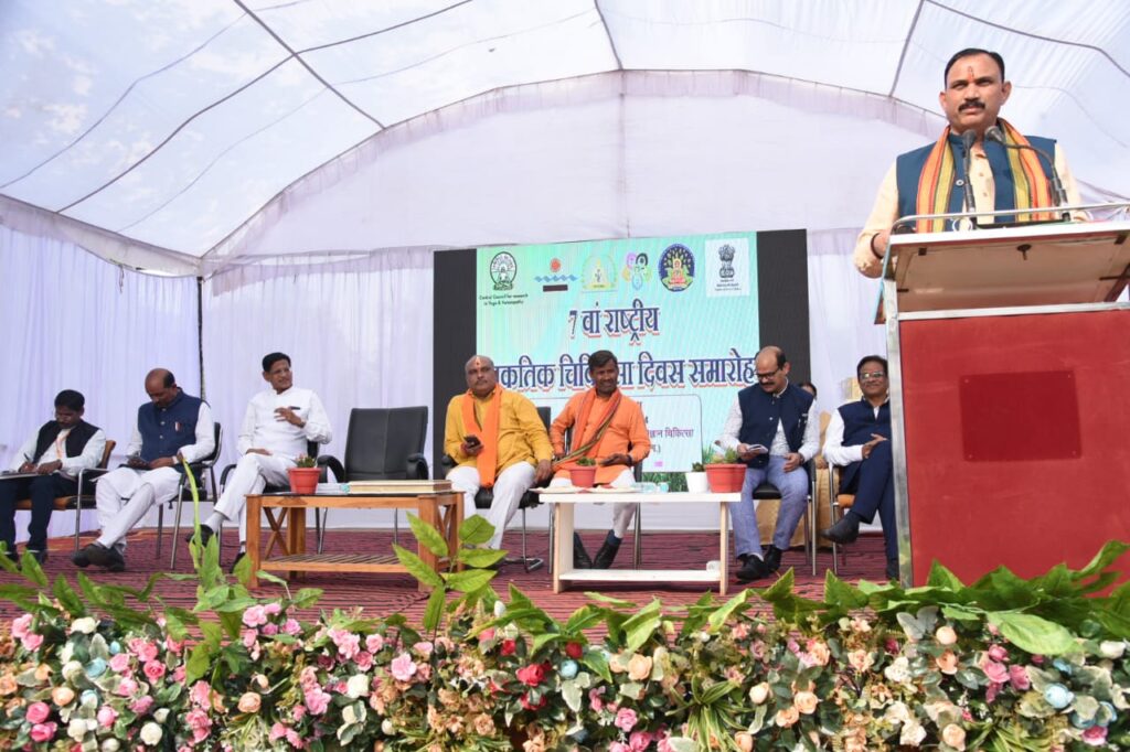 कार्यक्रम को संबोधित करते हुए विधायक ललित चंद्राकर ने कहा कि नगपुरा के ऐतिहासिक धरा में संचालित इस प्राकृतिक चिकित्सा महाविद्यालय में हम सातवां प्राकृतिक चिकित्सा दिवस मना रहे है। प्राकृतिक चिकित्सा पद्धति से देश की विश्व में पुरातन काल से पहचान रहीं है। उन्होंने आशा व्यक्त किया कि महाविद्यालय के प्राकृतिक चिकित्सा पद्धति का लाभ क्षेत्रवासियों को मिलता रहेे। महाविद्यालय के संचालक डॉ. आरके श्रीवास्तव ने अपने स्वागत उद्बोधन में महाविद्यालय की गतिविधियों को रेखांकित किया। प्राकृतिक चिकित्सक डॉ. प्रेमलाल पटेल ने प्राकृतिक चिकित्सा पद्धति पर विस्तारपूर्वक प्रकाश डाला। इससे पूर्व अतिथियों ने भगवान धनवन्तरी, सरस्वती और छत्तीसगढ़ महतारी के तैल चित्र पर माल्यार्पण एवं समक्ष दीप प्रज्ज्वलित कर कार्यक्रम का शुभारंभ किया। मुख्य अतिथि जायसवाल ने योगा एवं प्राकृतिक चिकित्सा के क्षेत्र में उत्कृष्ट कार्य करने वाले तीन लोगों को प्रशस्ति पत्र भेंट कर सम्मानित किया। इस अवसर पर स्थानीय जनप्रतिनिधि और महाविद्यालय के प्राध्यापकगण एवं विद्यार्थी बड़ी संख्या में उपस्थित थे।