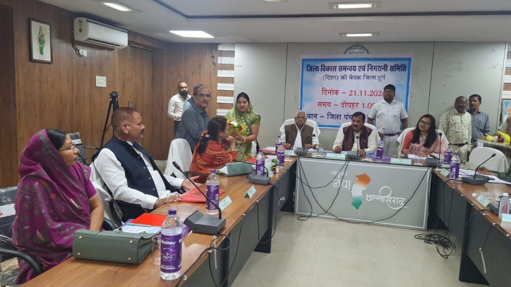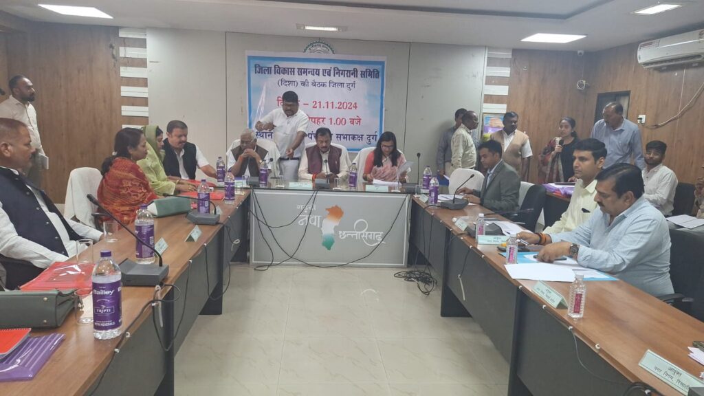 दुर्ग, । लोकसभा सांसद विजय बघेल की अध्यक्षता में आज जिला पंचायत के सभाकक्ष में जिला विकास समन्वय एवं निगरानी समिति (दिशा) की बैठक आयोजित की गई।