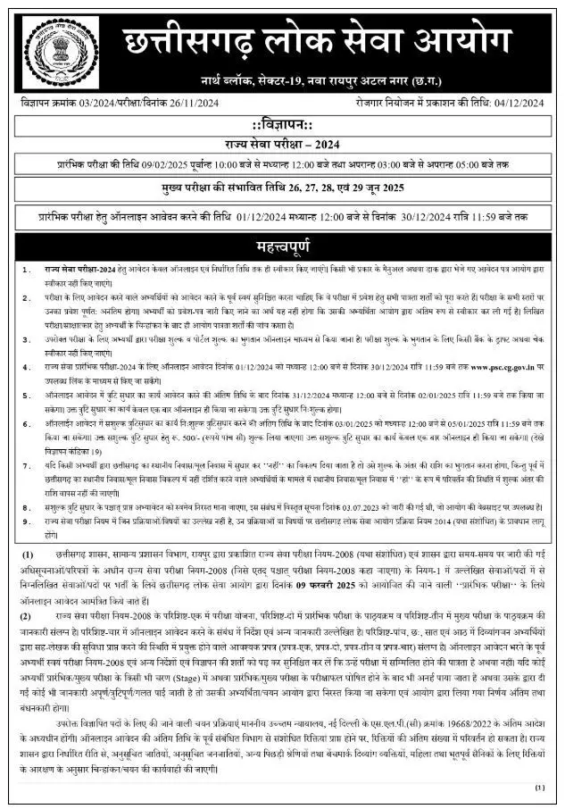 छत्तीसगढ़ लोक सेवा आयोग ने 246 पदों पर भर्ती के लिए नोटिफिकेशन जारी किया