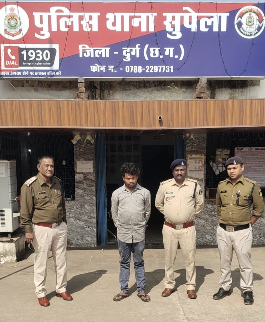 आरोपी को विधिवत् गिरफ्तार कर न्यायायिक रिमाण्ड पर भेजा गया है। इस महत्वपूर्ण कार्यवाही में थाना प्रभारी सुपेला निरीक्षक राजेश मिश्रा, उप निरीक्षक मनीष बाजपेयी, सउनि अजय शंकर अविनाशी, एसीसीयू टीम का विशेष योगदान रहा।