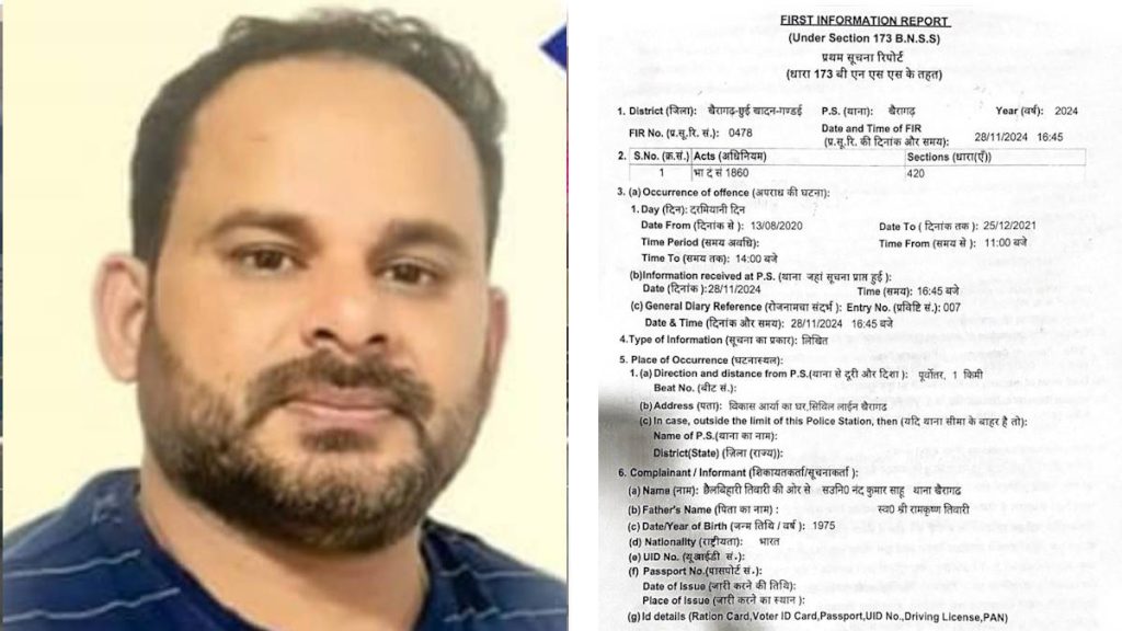 खैरागढ़। खैरागढ़ में एक बड़े जमीन धोखाधड़ी मामले में पुलिस ने बिल्डर विकास आर्या के खिलाफ धारा 420 (धोखाधड़ी) के तहत मामला दर्ज किया है। यह कार्रवाई आईजी के निर्देश पर की गई है¹।
