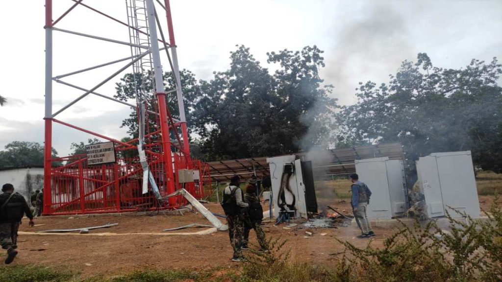 बीजापुर में नक्सलियों ने मोबाइल टॉवर को आग के हवाले किया