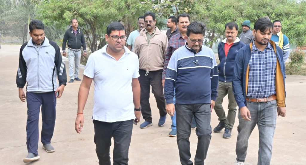 निगम आयुक्त आज सुबह हुड़को श्रीराम चैंक के आस-पास के उद्यानों को देखने पहुंचे। उन्होने अधिकारी को निर्देश दिए कि उद्यानों में लगाये गये पौधो में पानी की सिंचाई किया जाए, बंद पड़े नल को चालू किया जाए, बिछाए गये पाईप लाईन का संधारण कराए। उसके बाद हुड़को स्थित क्रिकेट स्टेडियम पहुंचकर वहां की सफाई कराने एवं टूटे हुए गेट का संधारण कराने को कहा, जिससे स्टेडियम में जानवर एवं असामाजिक तत्व अंदर न आए। वहां से होकर हुड़को तालाब का निरीक्षण किए तालाब में पूजा सामग्री विसर्जन हेतु कुण्ड बनाने के निर्देश दिए, जिससे आस-पास के नागरिक पूजा सामग्री को उसी में डाले। जिससे तालाब साफ-सुथरा रहे एवं जो स्ट्रीट लाईट बंद पड़े है उसका शीध्र संधारण करने के निर्देश दिए। अंत में शहीद कौशल स्मारक का निरीक्षण किये जहां स्मारक में लगाए गये टाइल्स टूट गये है उसे बदलने के साथ वहां पर लगे पौधो में पानी की सिंचाई करने के निर्देश दिए।