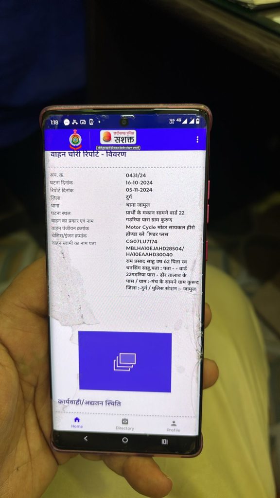 दुर्ग । दुर्ग पुलिस की सशक्त एप ने चोरी की गाड़ी को ढूंढ निकाला है। यह एप पुलिस महानिरीक्षक दुर्ग रेंज दुर्ग द्वारा बनाया गया है और इसका मकसद चोरी हुई वाहनों की जानकारी और बरामदगी करना है।