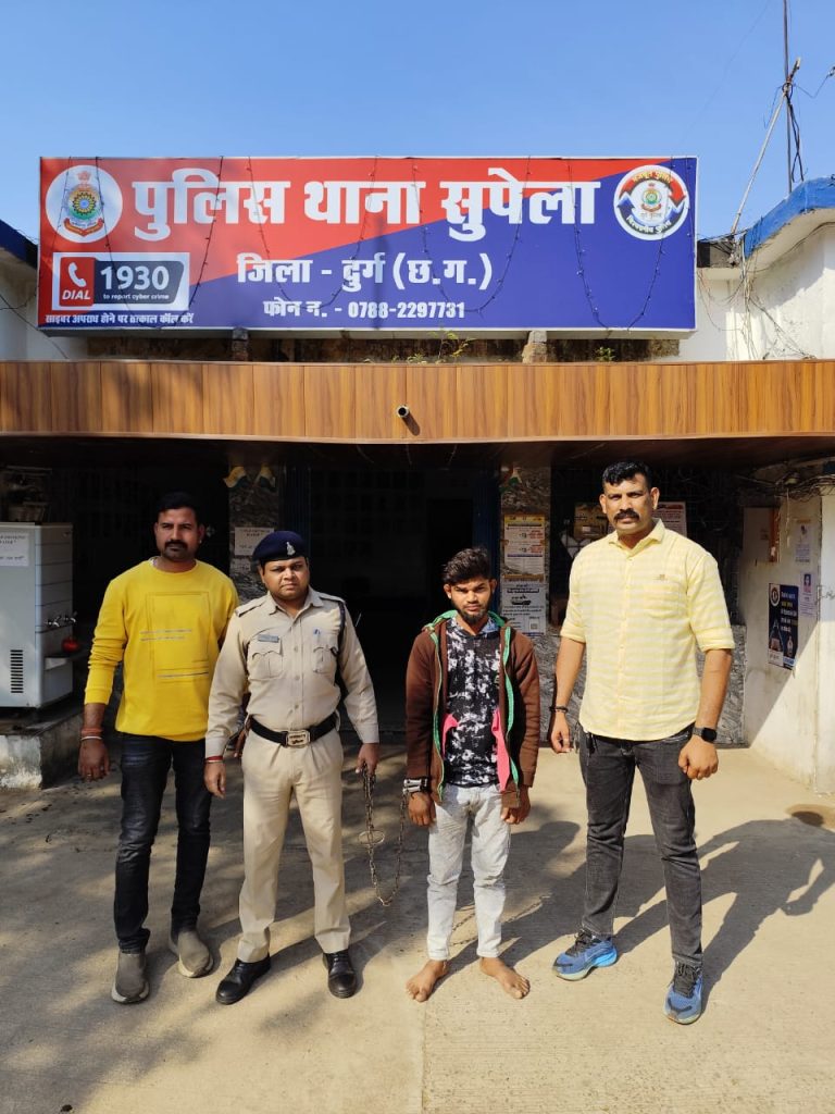 पुलिस अधीक्षक दुर्ग श्री जितेंद्र शुक्ला के निर्देश पर एवं अतिरिक्त पुलिस अधीक्षक (शहर भिलाई) श्री सुखनंदन राठौर एवं नगर पुलिस अधीक्षक महोदय भिलाई नगर श्री सत्यप्रकाश तिवारी के मार्गदर्शन में सुपेला पुलिस द्वारा आरोपी को गिरफ्तार किया गया है।
