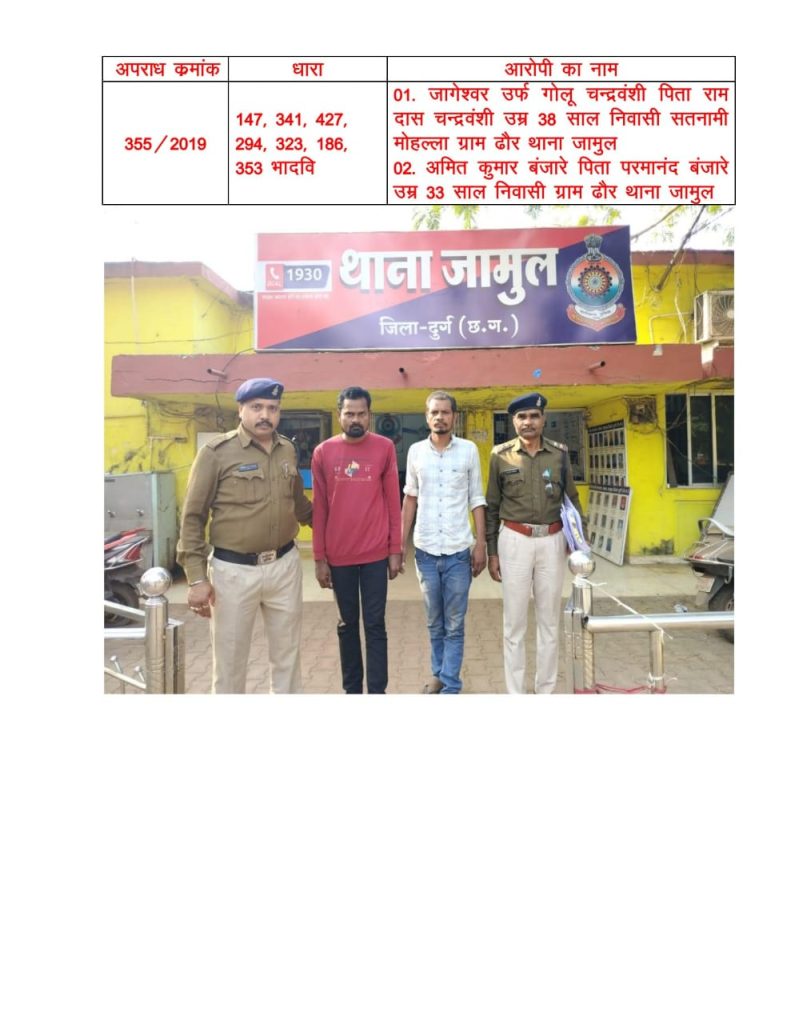 भिलाई । जामुल पुलिस ने 6 साल पुराने एक मामले में 2 आरोपियों को गिरफ्तार किया है। यह मामला 12 जुलाई 2019 को नंदिनी रोड ढौर चैक जामुल के पास सड़क दुर्घटना में एक व्यक्ति की मृत्यु के बाद हुए चक्काजाम और आगजनी से जुड़ा हुआ है।
