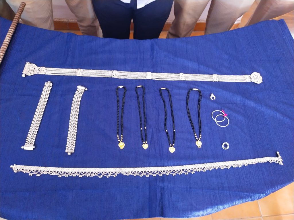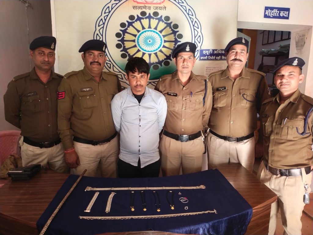 आरोपी सुमित पाल को थाना लाकर कड़ाई से पूछताछ की गई, जिसमें उसने चोरी करना स्वीकार किया और चोरी के समान को अपने घर में छिपा कर रखना बताया। आरोपी से चोरी गई विभिन्न सोने चांदी के जेवरात बरामद किए गए, जिनकी कीमत लगभग 90,000 रुपये है।