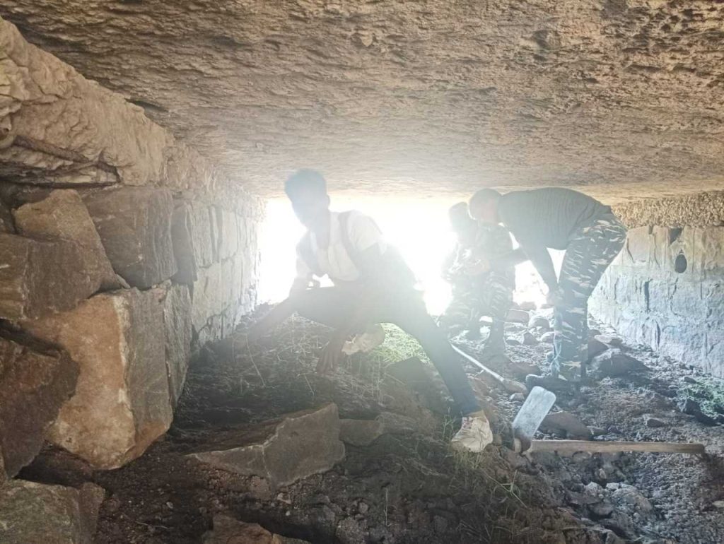 बीजापुर। बासागुड़ा थाना क्षेत्र में डीआरजी, बीडीएस, और सीआरपीएफ 168 बटालियन की टीम ने दुर्गा मंदिर के पास लगभग 50 किलो का आईईडी बरामद कर निष्क्रिय किया है। नक्सलियों ने सुरक्षा बलों को नुकसान पहुंचाने के उद्देश्य से बासागुड़ा-तिम्मापुर रोड पर यह आईईडी लगाया था।