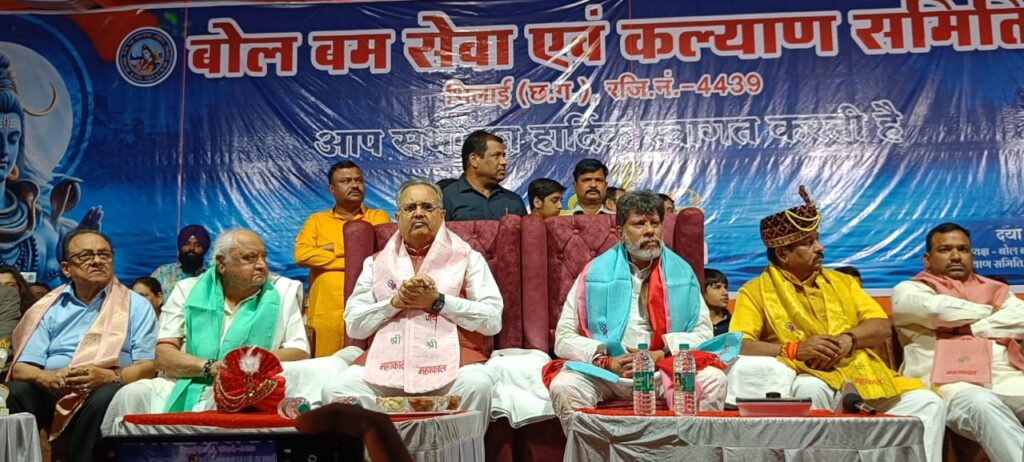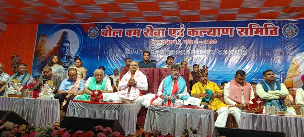 भिलाई । विधानसभा अध्यक्ष डॉ. रमन सिंह भिलाई में आयोजित महाशिवरात्रि कार्यक्रम में शामिल हुए। बोलबम सेवा एवं कल्याण समिति भिलाई द्वारा आयोजित कार्यक्रम में भगवान शिव का महा अभिषेक किया गया। इसके बाद बारात निकाली गई, बारात में विभिन्न स्थानों से आये झांकिया निकाली गई। झांकी में कलाकारों ने भगवान शिव के गण के रूप धारण कर नाचते गाते अपने करतब दिखाए। आयोजन समिति की ओर से विधानसभा अध्यक्ष डॉ. रमन सिंह, सांसद विजय बघेल, विधायक गजेंद्र यादव, रिकेश सेन एवं विधायक जगदलपुर किरण सिंह देव और अन्य अथितियों को समिति के अध्यक्ष दया सिंह ने शिव प्रतिमा व शाल भेंट कर सम्मान किया।