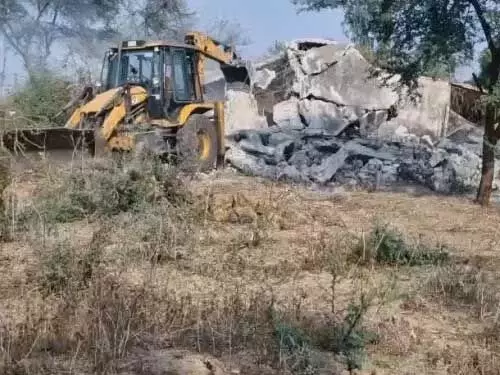 बिलासपुर । कोनी थाना क्षेत्र के घुटकू गांव में अवैध शराब की फैक्ट्री चलाई जा रही थी। यहां केदार लोनिया नामक कोचिया अवैध रूप से बनाए गए मकान पर शराब फैक्ट्री चलाता था। पक्का मकान सरकारी जमीन पर बनाया गया था। प्रशासन को इसकी जानकारी मिलने के बाद घर को बुलडोजर चलाकर ध्वस्त कर दिया गया है।