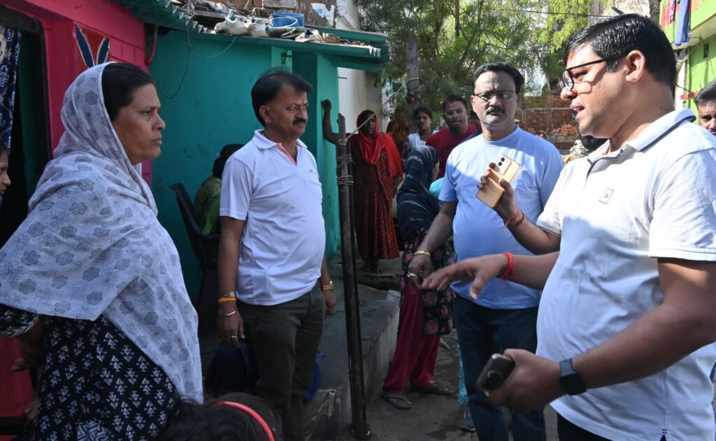 भिलाईनगर। नगर पालिक निगम भिलाई क्षेत्र के जोन-4 शिवाजी नगर खुर्सीपार अंतर्गत वार्ड क्रं. 42 गौतम नगर में पीलिया, डायरिया फैलने की सूचना मिलते ही आयुक्त राजीव कुमार पाण्डेय जोन आयुक्त अमरनाथ दुबे एवं विभागीय अधिकारियों को लेकर वार्ड का निरीक्षण करने पहुंचे। वहां जाकर वार्ड के नागरिको से पेयजल आपूर्ति की जानकारी प्राप्त किये। विभिन्न जगहो से पानी का सेम्पल लिया गया है, जिसको परीक्षण के लिए संबंधित विभाग में भेजा गया है। स्थानीय निवासियो एवं निगम कर्मचारियो से जानकारी प्राप्त हुई कि प्रभावित परिवारों द्वारा पुराने बोर के पानी का उपयोग किया जा रहा है। जिसको बंद करवाया गया, निगम के फिल्टर प्लांट से फिल्टर युक्त पानी की सप्लाई लाईन वहां बिछी हुई है, उसी से पानी लेने कहा गया। जिस क्षेत्र में वाटर लेवल कम है, वहां पर टेंकर से पानी की सप्लाई की जा रही है।