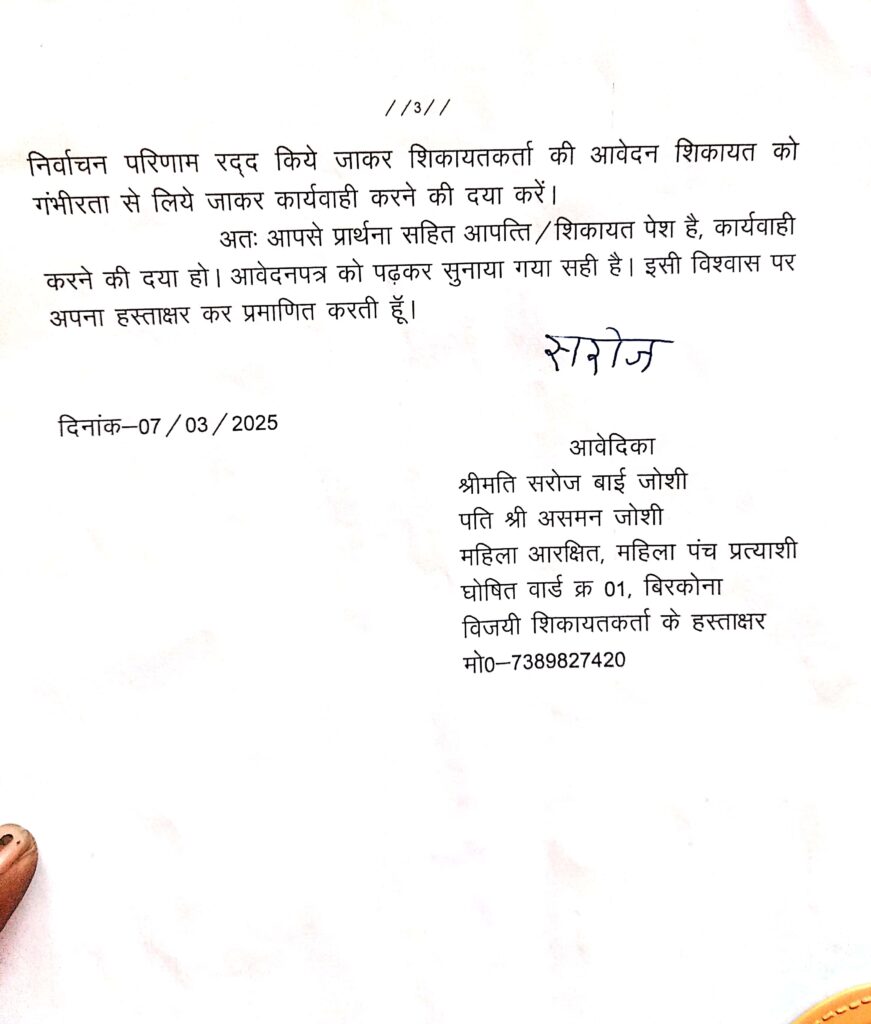 बिरकोना के चुनाव में हुई, गड़बड़ी चुनाव अधिकारी पर लगा आरोप