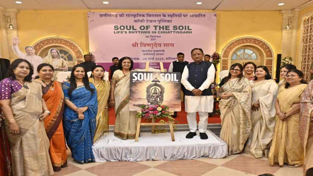 रायपुर । रायपुर में अंतर्राष्ट्रीय महिला दिवस पर मुख्यमंत्री विष्णु देव साय ने कॉफी टेबल बुक “सोल ऑफ द सॉयल लाइफ्स रिदम्स इन छत्तीसगढ़” का विमोचन किया [1]।