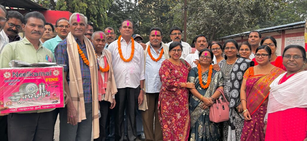 भिलाईनगर। नगर पालिक निगम भिलाई में 62 वर्ष की आयु पूर्ण कर चुके 5 कर्मचारियों को ससम्मान बिदाई दी गई। मुख्य कार्यालय सभागार में आज निगम प्रशासन की ओर से कर्मचारियों को स्मृति चिन्ह, शाॅल और श्रीफल भेंट करते हुए सेवानिवृत्त होने वाले कर्मचारियों की अच्छे स्वास्थ्य और दीर्घायु की कामना किये। इसके पूर्व सेवानिवृत्त होने वाले कर्मचारियों ने भिलाई निगम में सेवाकाल के दौरान कार्य एवं अनुभव को साझा किए। उन्होने कहा हम सब पूर्व साडा के समय से विभिन्न विभागो में कार्य करते हुए अपने दायित्वों का निर्वहन किए। हम सबको गर्व है अपनी क्षमता के अनुसार कार्य किए।