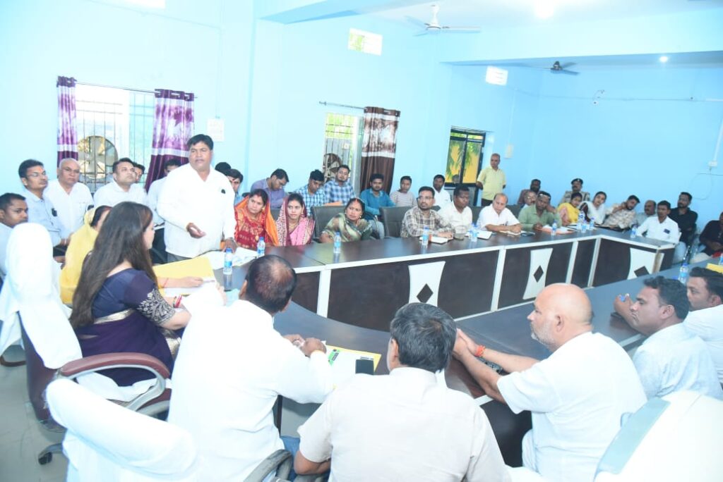 उन्होंने बताया की बैठक में प्रमुख रूप से प्रधानमंत्री आवास योजना के तहत पात्र लाभार्थियों को लाभ दिलाना, स्कूलों में विद्यार्थियों की सुरक्षा सुनिश्चित करना एवं बाउंड्रीवाल का निर्माण, नगर में मॉडल स्कूल के निर्माण, शासकीय अधिकारियों की तय समय पर कार्यालय में उपलब्धता सुनिश्चित करने के लिए बायो मैट्रिक अटेंडेंस, अगले माह के अंत तक पात्र लोगों को चिन्हांकित कर जमीन का पट्टा वितरण करने, गर्मी को देखते हुए बिजली की व्यवस्था को दुरुस्त करने, स्कूलों में सेनेटरी पैड की व्यवस्था एवं वर्तमान में नगर में हो रहे विकास कार्यों एवं अधोसंरचना निर्माण को गुणवत्ता के साथ तय समय पर पूरा करने जैसे जनहित के विषयों पर चर्चा कर इस दिशा में कार्य करने के लिए अधिकारियों को निर्देश दिए गए हैं। हमें पूरा विश्वास है कि सुशासन की सरकार में हम इन सभी विकास कार्यों एवं जनकल्याण के कार्यों को पूर्ण पारदर्शिता के साथ पूरा करेंगे।जबसे प्रदेश में ट्रिपल इंजन की भाजपा सरकार बनी है विकास कार्यों में तेजी आई है। जनता को योजनाओं का लाभ मिल रहा है और अधोसंरचना निर्माण, व्यावसायिक गतिविधयों को बढ़ावा, किसानों और महिलाओं का आर्थिक सशक्तिकरण, गुणवत्तापूर्ण शिक्षा के साथ विद्यालयों का उन्नयन और मूलभूत सुविधाओं का निरन्तर विस्तार सुनिश्चित हो रहा है जिसका सीधा लाभ जनता को मिल रहा है।