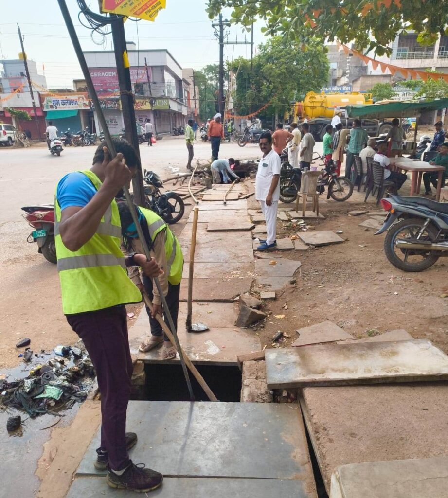 भिलाईनगर। अप्रत्यासित बरसात के कारण नगर पालिक निगम भिलाई के कुछ क्षेत्रों में जल भराव हो गया था। जिसे निगम की टीम युद्व स्तर पर व्यवस्थित करवा रही है। कुछ क्षेत्रों में आंधी-तुफान से वृक्ष भी गिर गये थे, उसे भी हटवाया जा रहा है। आयुक्त राजीव कुमार पाण्डेय ने स्वास्थ्य अधिकारी जावेद अली को निर्देशित किए है कि नगर निगम भिलाई को हमेशा तत्पर रहना चाहिए। कहीं भी किसी भी परिस्थिति में जल भराव या पेड़, डाली गिरने की स्थिति में निगम का अमला तुरन्त सक्रिय होे जाए। इसकी तैयारी निगम क्षेत्र के सभी बड़े नाली, नालियों को पुनः एक बार जे.सी.बी. एवं चैन माउटिंग से सफाई कर दिया जाए, जिससे पानी का निकासी बराबर हो सके।