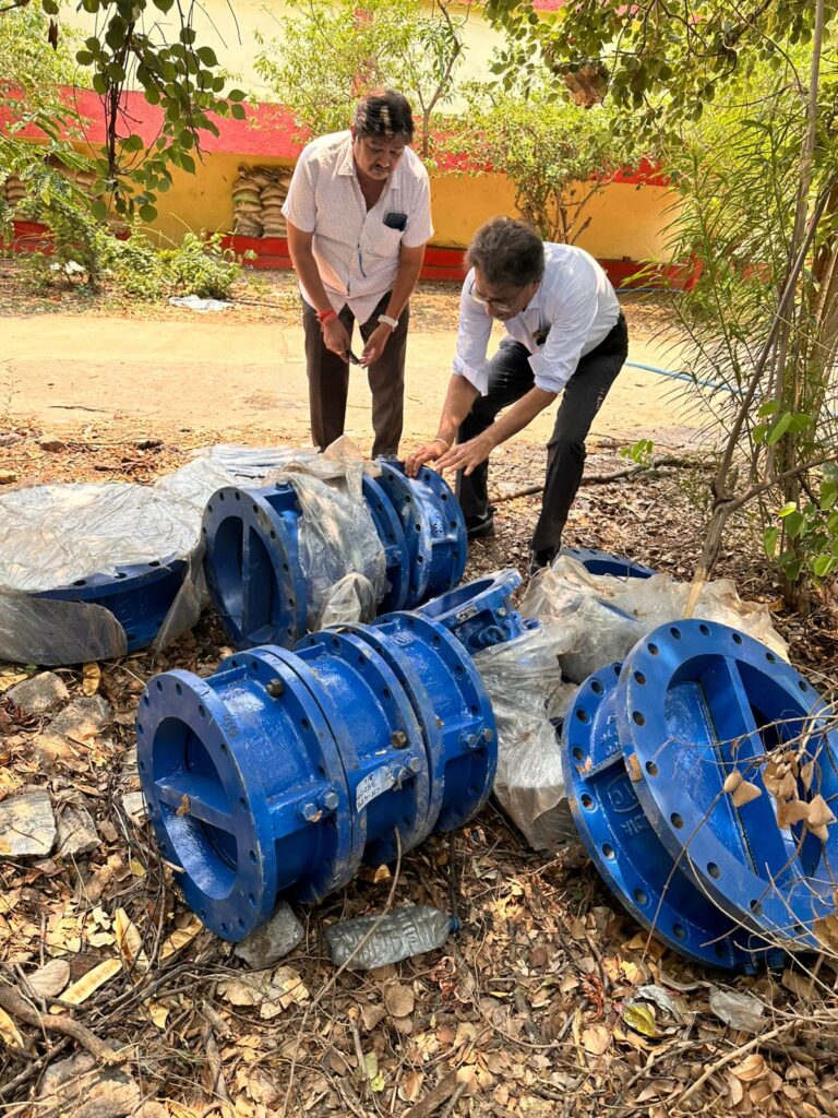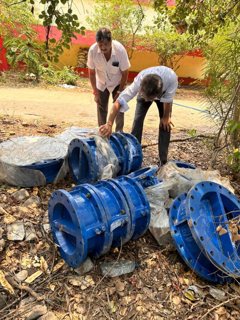 नया इंटेकवेल वाॅल के लिए जो पाईप सामग्री आई है, उसके डाया की जाॅच करने के लिए जलकार्य प्रभारी कार्यपालन अभियंता सुनील जैन एवं सहायक अभियंता बृजेश श्रीवास्तव द्वारा सामग्री का जाॅच किया जा रहा है। श्री सुनील जैन ने बताया कि रिटर्निंग वाल, इंटेकवेल का एवं 77 एम.एल.डी फिल्टर प्लांट का बदलवाना आवश्यक है, यह पुराना हो गया है। किसी प्रकार की दुर्घटना न हो, इसलिए हम लोग समय अवधि के अंदर ठीक करा देगें। जिससे गर्मी को देखते हुए नागरिको को पानी की सप्लाई पर्याप्त मात्रा में किया जा सके।