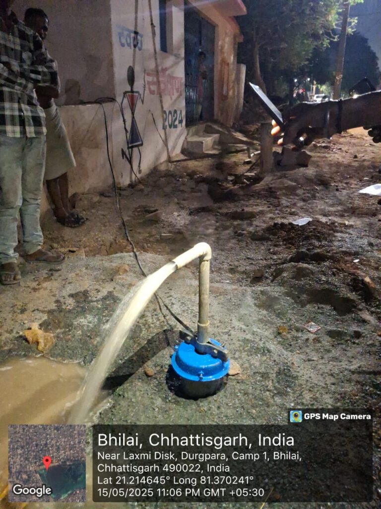 कल दिनांक 15 मई के रात्रि 11 बजे जोन आयुक्त स्वयं खड़े होकर संबंधित बोर में मोटर लगाकर उसे चालू करवाये। उसका लोकेशन फोटोग्राफमय वीडियो के साथ आयुक्त को भेजे। इससे स्थानीय निवासियों को बहुत खुशी हुई, सभी लोग अपने आवश्यकतानुसार शौचालय का उपयोग करना शुरू कर दिए है। सभी जोन के जोन आयुक्त को निर्देशित किया गया है कि किसी भी वार्ड में गर्मी को देखते हुए पानी की समस्या नहीं होना चाहिए। यदि किसी कारण से मोटर खराब है या पानी की सप्लाई नहीं हो रहा है। तो उसे गैंग के द्वारा सुधरवाया जावे। इसके लिए निगम के पास पर्याप्त बजट है, किसी प्रकार की असुविधा नहीं होगी।