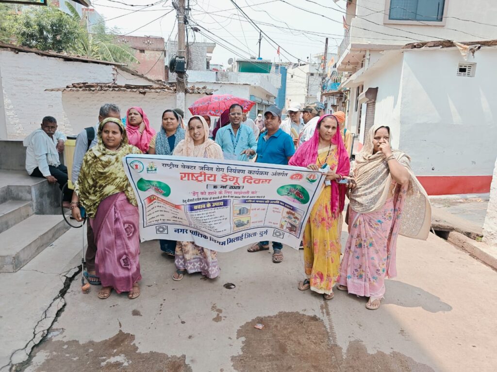 भिलाईनगर। शासन के मंशानुरूप राष्ट्रीय डेंगू दिवस 2025 की थीम अनुसार डेंगू/मलेरिया से बचाव के लिए निगम आयुक्त राजीव कुमार पाण्डेय के मार्गदर्शन में जोन 01 के वार्ड 07 राधिका नगर अंतर्गत रैश्ने आवास, जोन 02 के वार्ड 27 शास्त्री नगर अंतर्गत मेहमान कोल डिपो एवं आंगन बाड़ी के आसपास श्रमिक बस्ती, जोन 03 के वार्ड 33 संतोषी पारा में एसएलआरएम सेंटर के पीछे हुडको क्वार्टर में आम नागरिकों में जन समुदाय में जन जागरूकता लाने के उद्देश्य से डेंगू रोधी नारों के साथ रैली निकालकर तथा अपने शहर में स्वच्छता को अपनाते हुए डेंगू मुक्त शहर बनाने का संकल्प लिया गया।