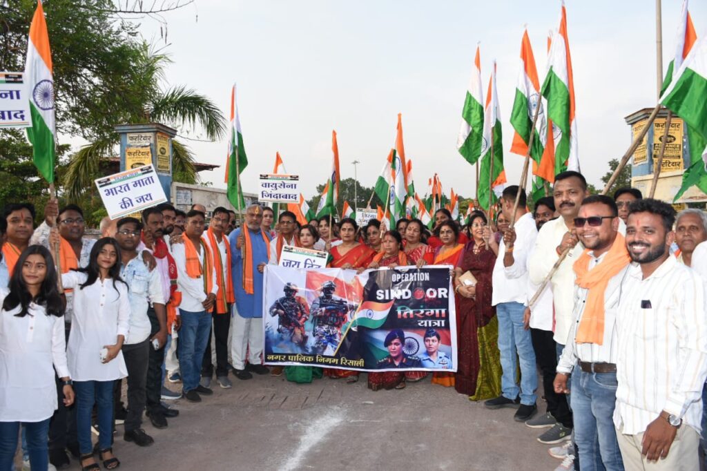 महिलाओं ने रैली तिरंगा के सम्मान में निकाली। आॅपरेशन सिंदुर के सफल होने पर दशहरा मैदान में महिलाओं ने आपस में सिंदुर का तिलक की। इसके बाद विधायक के नेतृत्व में रैली भारत माता के जयकारे लगाते हुए कृष्णा टाकिज रोड पहुंची। कृष्णा टाकिज रोड भ्रमण करते हुए रैली वापस शहीद स्मारक स्थल पहुंची। जहां महिलाओं ने और वरिष्ठ नागरिकों ने शहीद स्मारक पर पुष्प अर्पित किए। इस अवसर पर एमआईसी सदस्य डाॅ. सीमा साहू, पार्षद रमा साहू, माया यादव, धर्मेन्द्र भगत, सांसद प्रतिनिधि दीपक पप्पू चंद्राकर, मण्डल अध्यक्ष राजू जंघेल, अनुपम साहू, महिला स्व समूह की सदस्य व नगर पालिक निगम रिसाली की महिला कर्मचारी-अधिकारी उपस्थित थे।