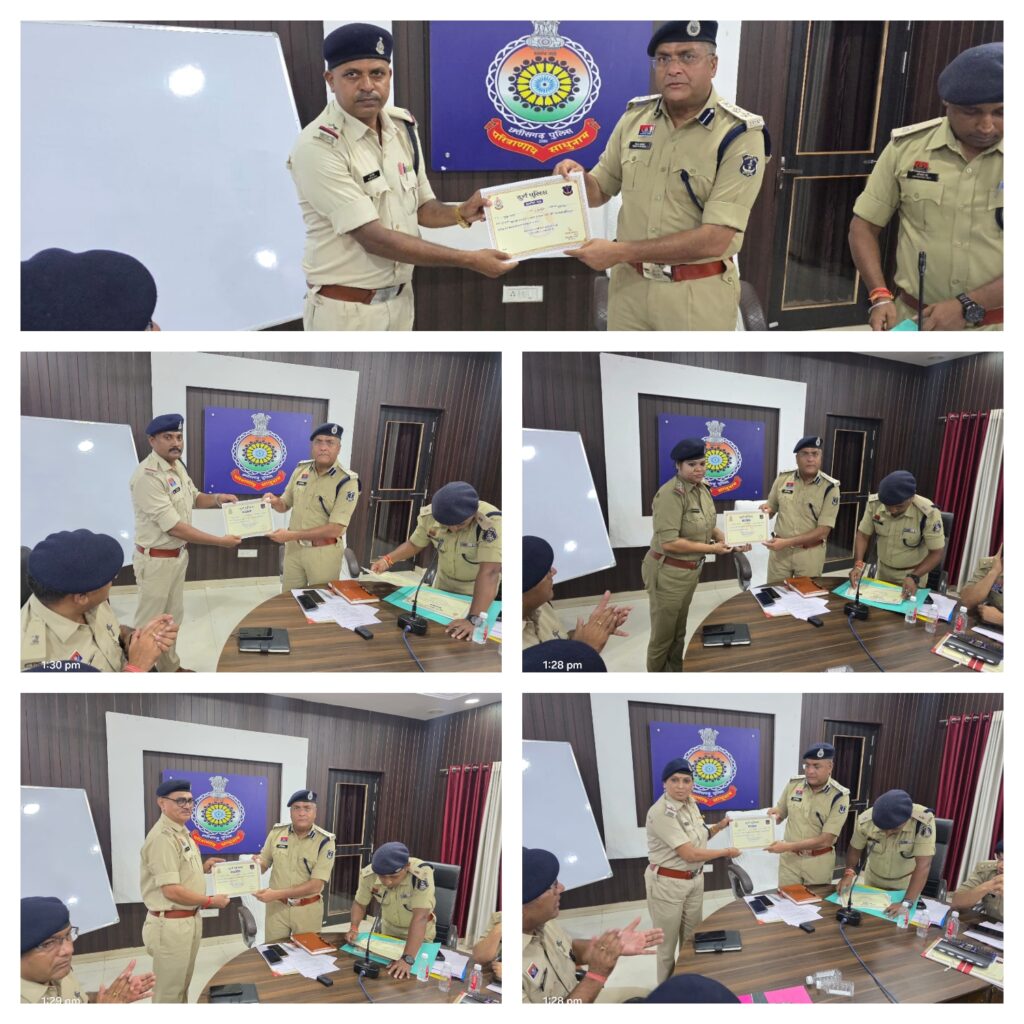 NDPS एक्ट एवं अन्य अपराधों में उत्कृष्ट कार्य करने वाले उप निरीक्षक सौमित्री भोई, सहायक उप निरीक्षक महफूज खान, रामकृष्ण तिवारी, पुरन दास एवं दिनेश सिंह को प्रशस्ति पत्र देकर सम्मानित किया गया। साथ ही थाना पाटन एवं थाना बोरी के थाना प्रभारियों को उत्कृष्ट कार्य हेतु पुरस्कृत किया गया।