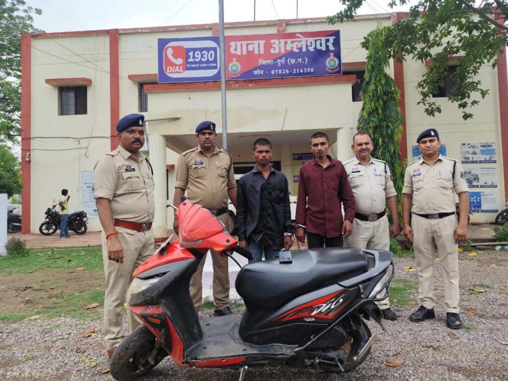 मामले में पुलिस ने आरोपी नोहर लाल सोनकर उर्फ नितीन (23) निवासी मुडरा, थाना मुजगहन और राजू सिन्हा उर्फ बाबू सिन्हा (23) निवासी शीतला चैक, भाठागांव को गिरफ्तार किया है। आरोपियों के पास से मोबाइल, 2000 रुपये, कैंची और स्कूटी (CG-04-MZ-1105) जब्त की गई है।