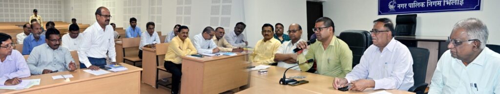 आयुक्त राजीव कुमार पाण्डेय ने नगर निगम भिलाई की आय को बढ़ाने निगम सभागार में बैठक बुलाई। बैठक में नगर निगम भिलाई के सेवानिवृत्त वरिष्ठ अधिकारी एवं वरिष्ठ अधिकारी उपस्थित रहे। आयुक्त पाण्डेय के अनुसार गोकुल नगर में आबंटित भूमि स्वामियों द्वारा लीज डीट के शर्तो के आधार पर प्रिमियम की राशि का भुगतान नहीं किया जा रहा है। ऐसे 57 लोगो को नोटिस जारी किया जा रहा है, गुरूवार से नोटिस वितरण प्रारंभ किया जाएगा। सभी विभागों में अनावश्यक खर्चो में रोक लगाने के लिए मितव्ययिता बरतने के निर्देश दिये गए साथ ही न्यायालीन प्रक्रिया में कटौती करना होगा। विशेष कार्यक्रमो के लिए सामुदायिक भवनों का दर निर्धारण किया जाना होगा। पूर्व से निर्मित प्रगति मार्केट वर्तमान मदर्स मार्केट पावर हाउस में व्यय की गई एक लंबी राशि की वसूली के लिए खुली निलामी के माध्यम से दुकानों का विक्रय किया जाएगा। निगम क्षेत्र के तालाबों में मछली पालन कर आय बढ़या जा सकता है।