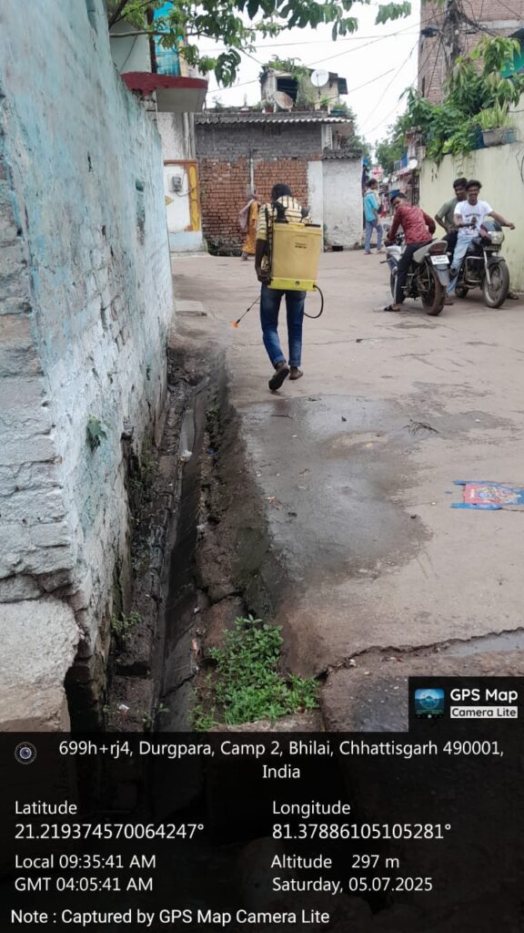 निगम आयुक्त के निर्देशों के परिपालन में निगम का विशेष दस्ता एवं जिला मलेरिया विभाग के सर्वेलेंस कार्यकर्ताओं की संयुक्त टीम का कार्य जारी है । विगत वर्षों में डेंगू से प्रभावित क्षेत्र/मोहल्ले को संवेदनशील मानते हुए निर्धारित रोस्टर अनुसार निरंतर घर घर जाकर सर्वेलेंस सर्वेक्षण एवं मच्छर रोधी औषधियों का छिड़काव कार्य जारी है। प्रत्येक सर्वेक्षित घरों के कूलर/टंकी/ड्रम/कंटेनर एवं अन्य मच्छर लार्वा उत्पत्ति पात्र जैसे:-टायर, गमले, डिस्पोजल, पशुओं के पानी पीने के लिए रखे गए नांद वगैरह की जांच किए जा रहे हैं। घर घर गृह भेंट के दौरान सभी को सप्ताह में एक दिन रविवार या किसी अवकाश के दिन शुष्क दिवस मनाते हुए समुचित पात्रों के पानी साफकर/सूखाकर ही नए पानी भरकर उपयोग करने की समझाइश दी जा रही है।
